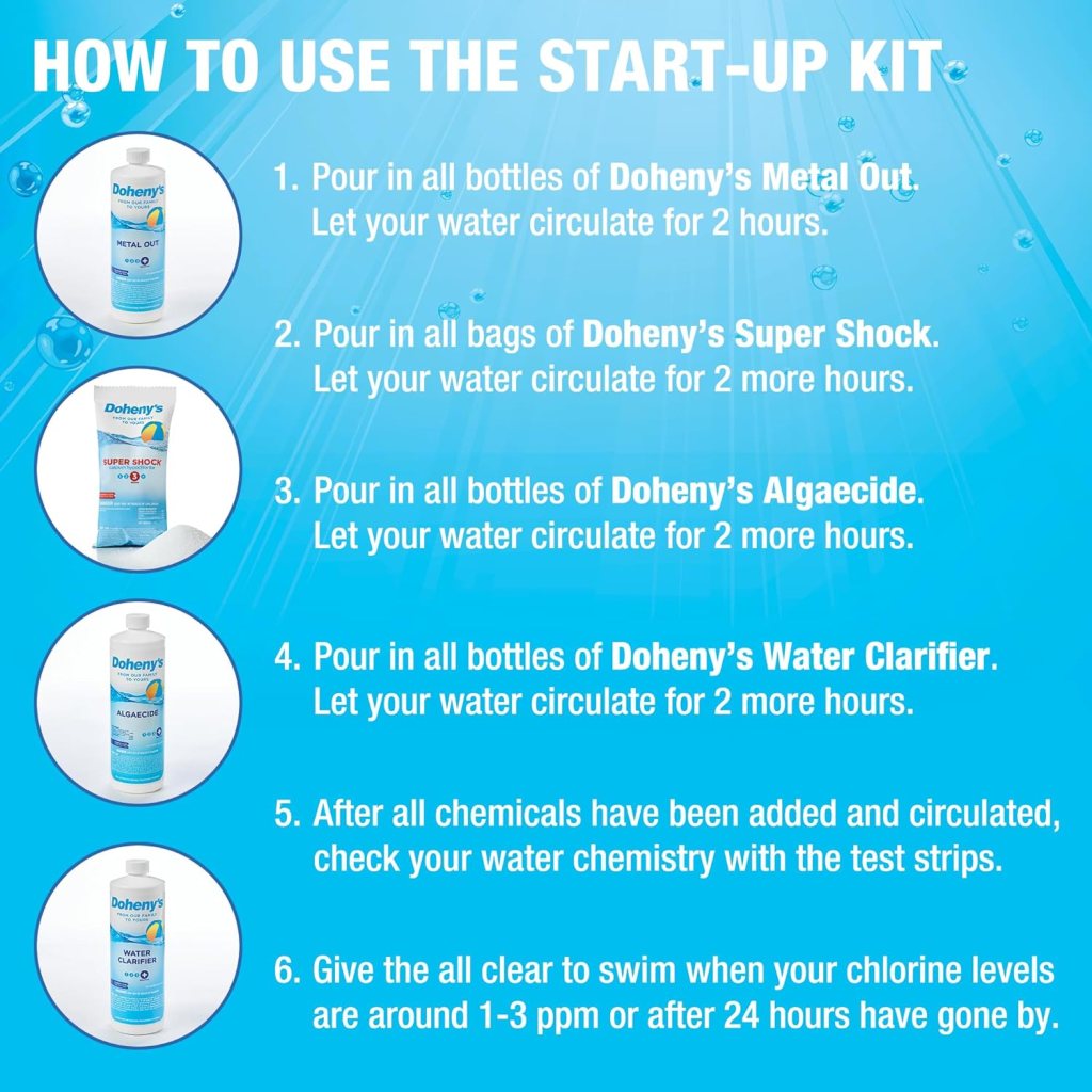Doheny’s has great chemicals at reasonable prices. Their Ultimate pool opening kits are easy to use and available for pools starting at 10,000 gallons and can be purchased through Amazon here: https://amzn.to/4b7U9R9